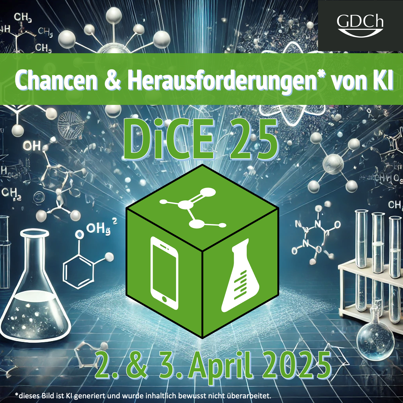 Die AG DiCE begrüßt Sie herzlich zur DiCE-Tagung 2025! Ziel der Tagung ist es, den Austausch über die aktuellen Themen des digitalen Chemieunterrichts mit Studierenden, Lehrkräften und Fachkolleg*innen voranzutreiben. Diese findet online am 02.04.2025 (14 - 18 Uhr) sowie am 03.04.2025 (09 -17 Uhr) statt. Vorgeschaltet ist ein Nachwuchsmeeting, welches am 02.04.2025 von 10 - 12 Uhr veranstaltet wird.